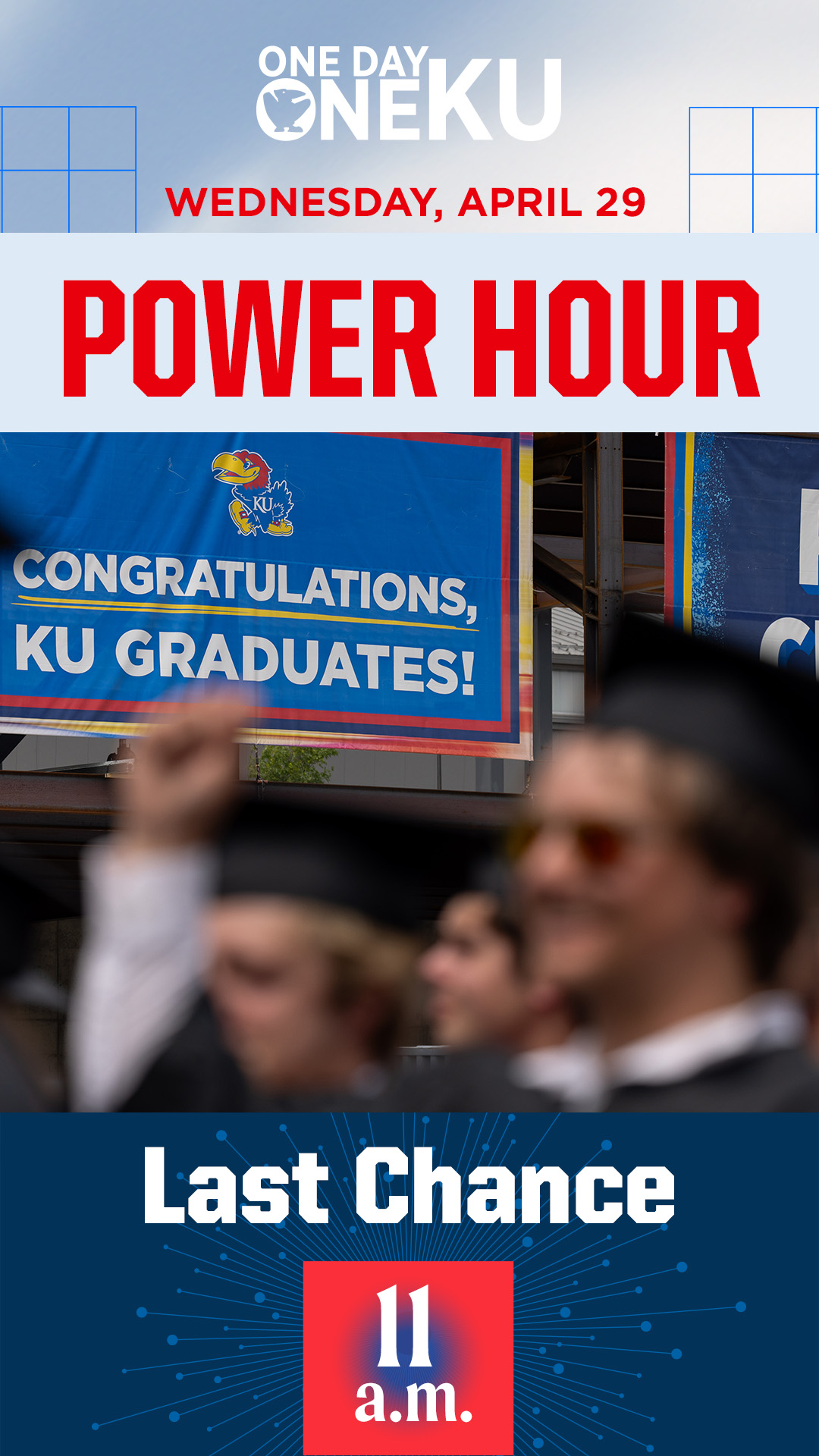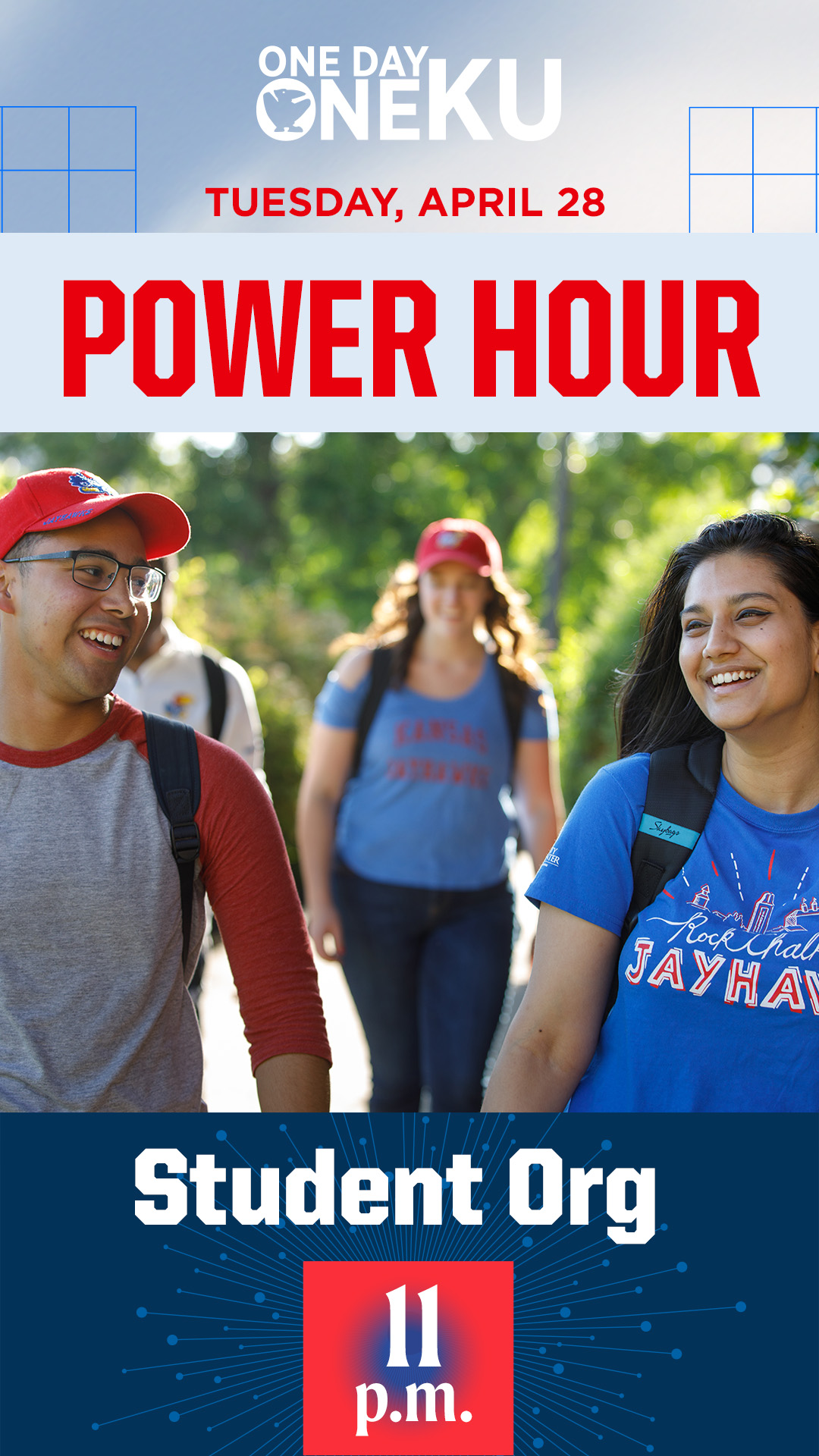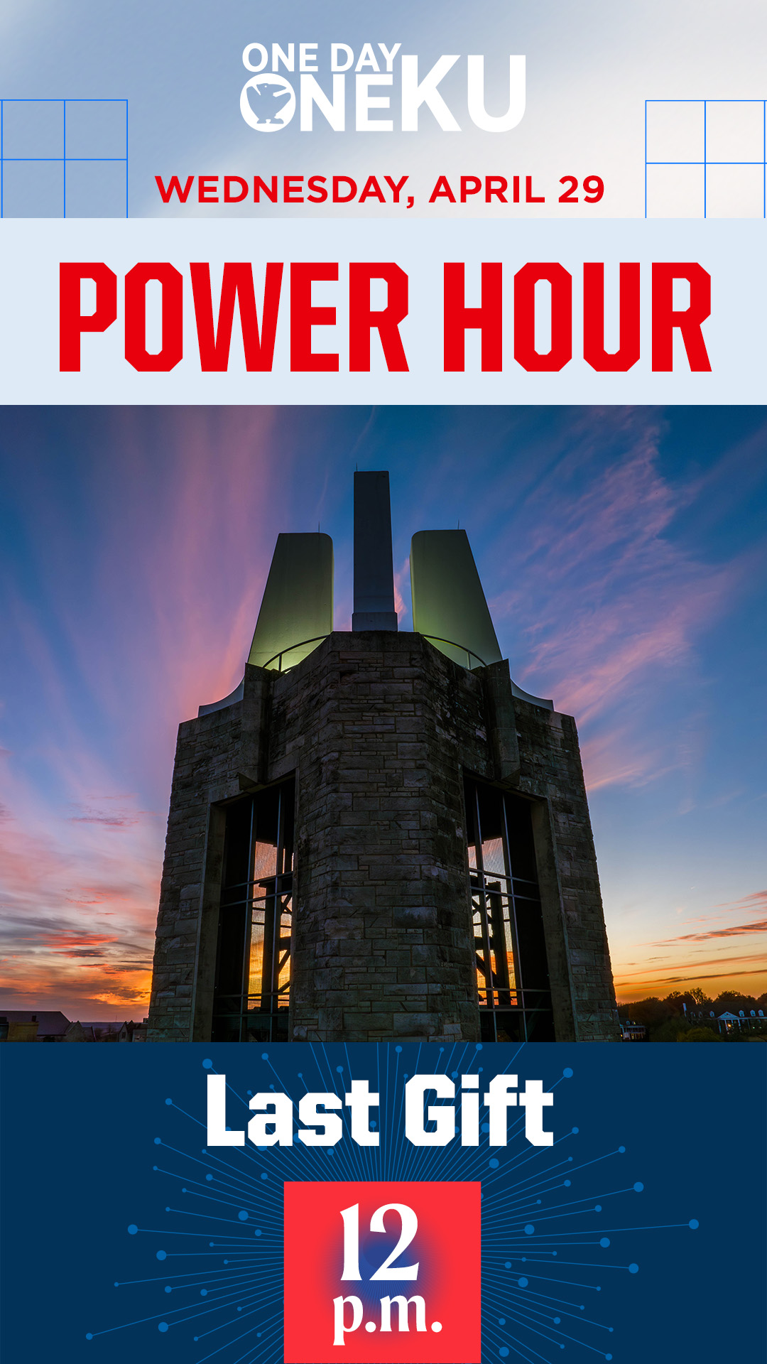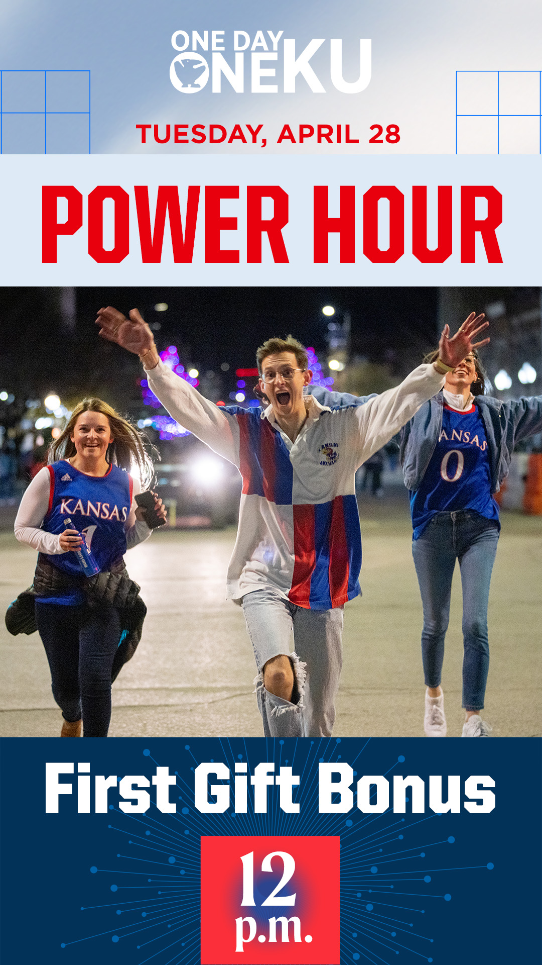 Throughout One Day One KU, your unit can win bonus dollars by participating in one of our Power Hours. You can use the graphics below to promote the hour(s) in which your unit will be participating. To download, click on the image and then right click and select “Save Image As.”