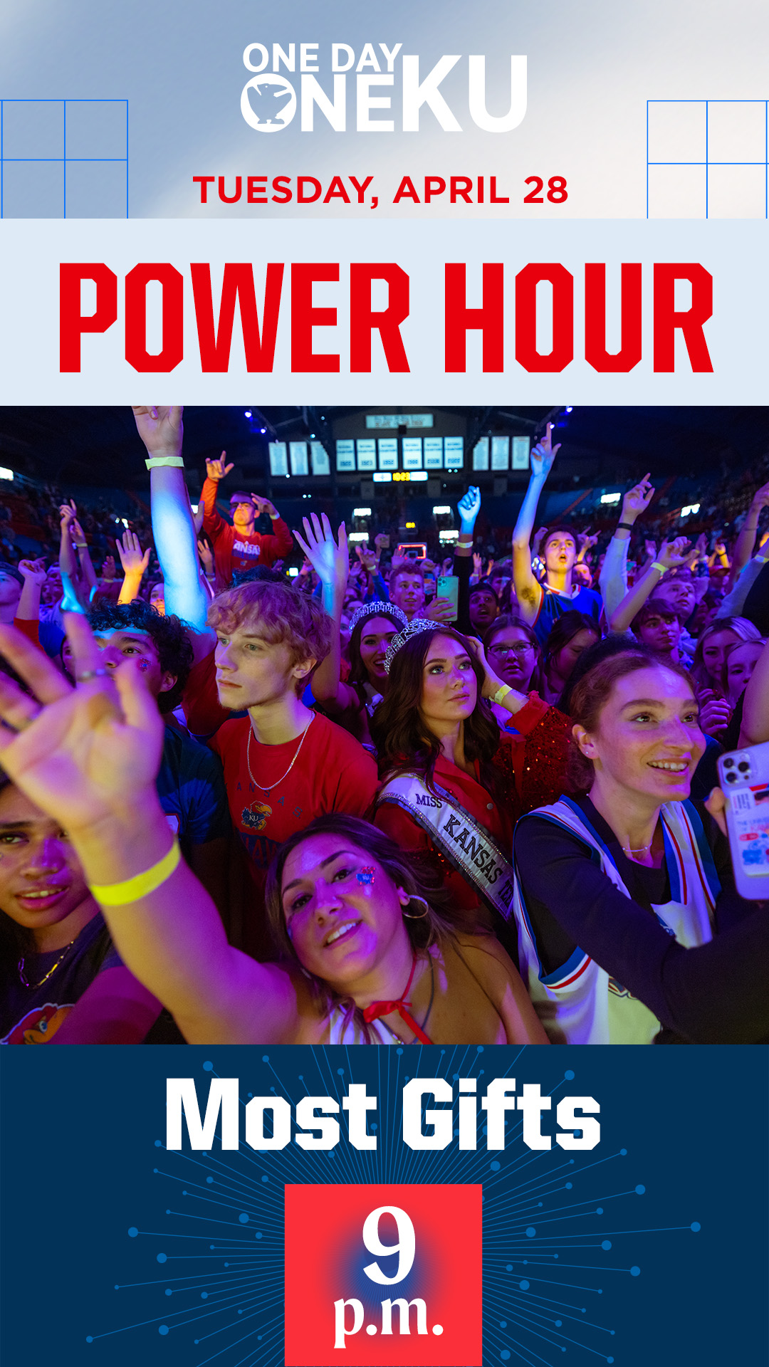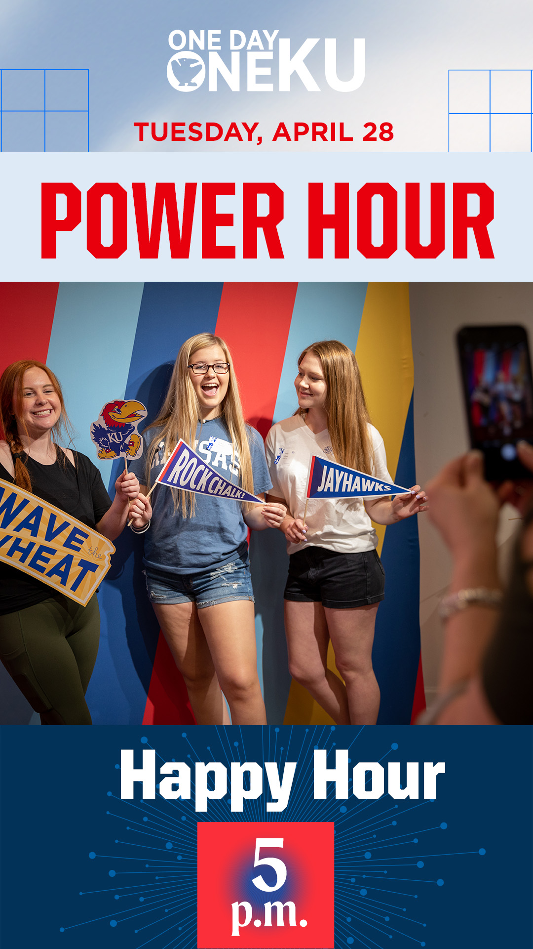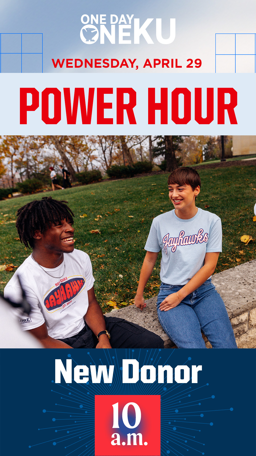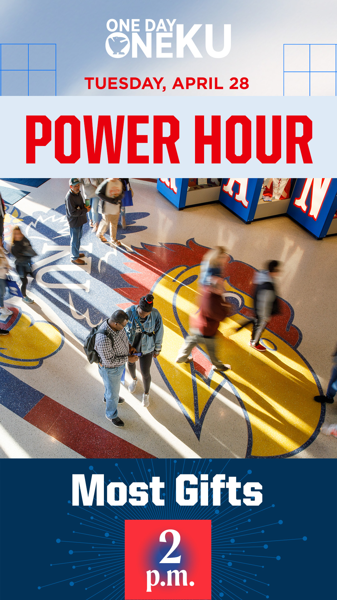 Throughout One Day One KU, your unit can win bonus dollars by participating in one of our Power Hours. You can use the graphics below to promote the hour(s) in which your unit will be participating. To download, click on the image and then right click and select “Save Image As.”